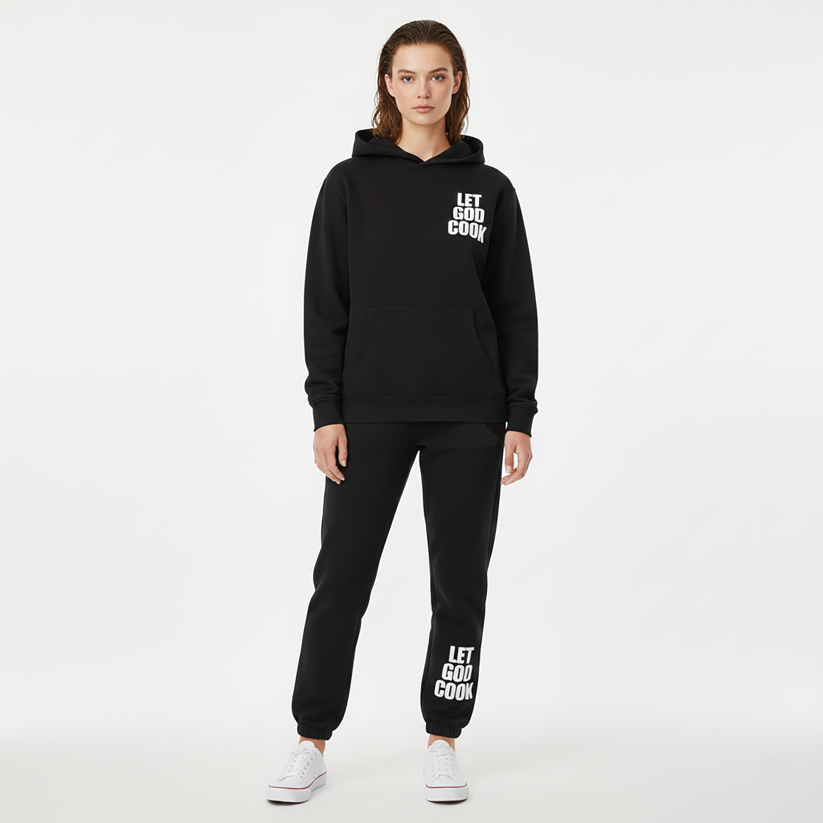 The minimalist design enhances the sophisticated silhouette, making them the perfect complement to the LET GOD COOK Hoodie set, giddier pants, or our signature crew neck Shirt. Fusing high-end craftsmanship with timeless style, these are an essential statement pieces for those who appreciate style and purpose in every detail.